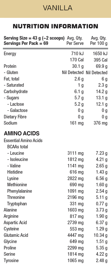* Vanilla variant nutrition information shown. Chocolate has 13.5g EAAs, 6g BCAAs & 3g Leucine