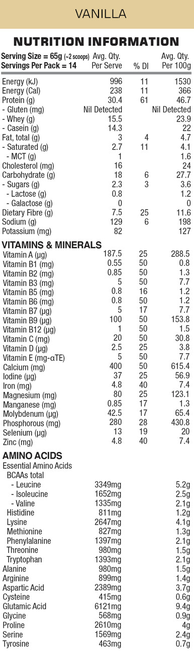 High in positive nutrients and controlled in negative nutrients (sugars, saturated fat and salt) – it allows you to get a meal that carries a 5 Health Star rating, in a delicious and convenient shake.